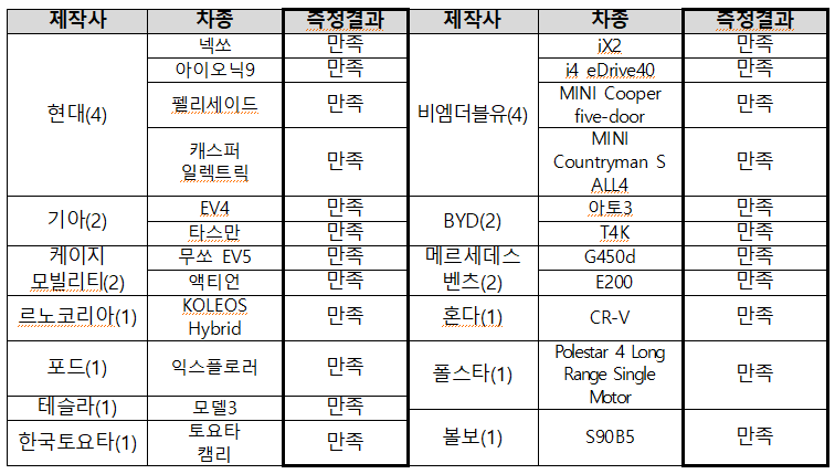 그 결과, 제조 공정 개선 이후 생산된 차량(샘플 조사, 한국교통안전공단 자동차안전연구원 수행)에서 권고기준을 충족한 것으로 확인돼, 사후 관리와 개선 조치가 작동하고 있음을 재확인하였다.