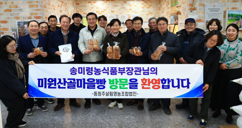 송미령 농림축산식품부 장관은 1월 19일(월) 오후, 충북 청주시 미원면에 소재한 미원산골마을빵집을 방문하여 지역 농산물 활용 농촌경제 활성화 우수사례를 청취하고 관계자들을 격려했다.