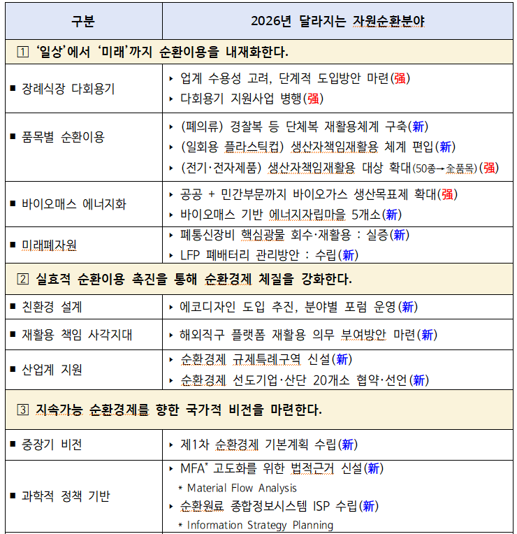 2026년에는 사회 전반에 걸친 촘촘한 순환이용체계 마련과 체질강화를 병행 추진하고, 안정적 처리체계 유지를 위한 정책적 노력과 함께 기술혁신을 바탕으로 국가적인 이상향(비전)을 마련할 계획이다.