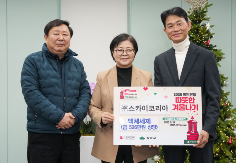 이번 전달식에서 (주)스카이코리아(대표 정해현)는 강북구 관내 저소득 가구를 지원해 달라며 총 526만원 상당의 자사 제품 액체세제(3ℓ) 400개를 기탁했다. 기탁된 물품은 강북잇다푸드뱅크마켓을 통해 지역 내 어려운 이웃들에게 전달될 예정이다.