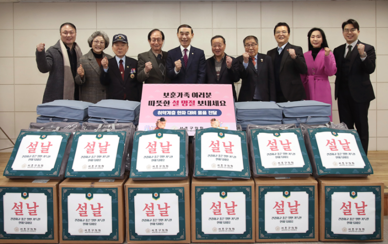 서초구의회의 명절 나눔은 처음이 아니다. 의회는 ▲2023년 떡국떡(200개) ▲2024년 겨울 이불(100채) ▲2025년 전기매트(100개) 등 해마다 꾸준히 온정을 나눠왔다. 특히 올해는 설 명절을 맞아 보훈의 의미를 되새기고 보훈가족에 실질적인 도움이 될 수 있도록 맞춤형 지원에 마음을 담았다.