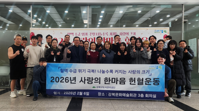 서울 강북구도시관리공단(이사장 김윤기, 이하 공단)은 임직원의 자발적 참여를 기반으로 한 ‘사랑의 헌혈운동’을 지속적으로 추진하며 지역사회 생명나눔 문화 확산에 앞장서고 있다고 밝혔다.