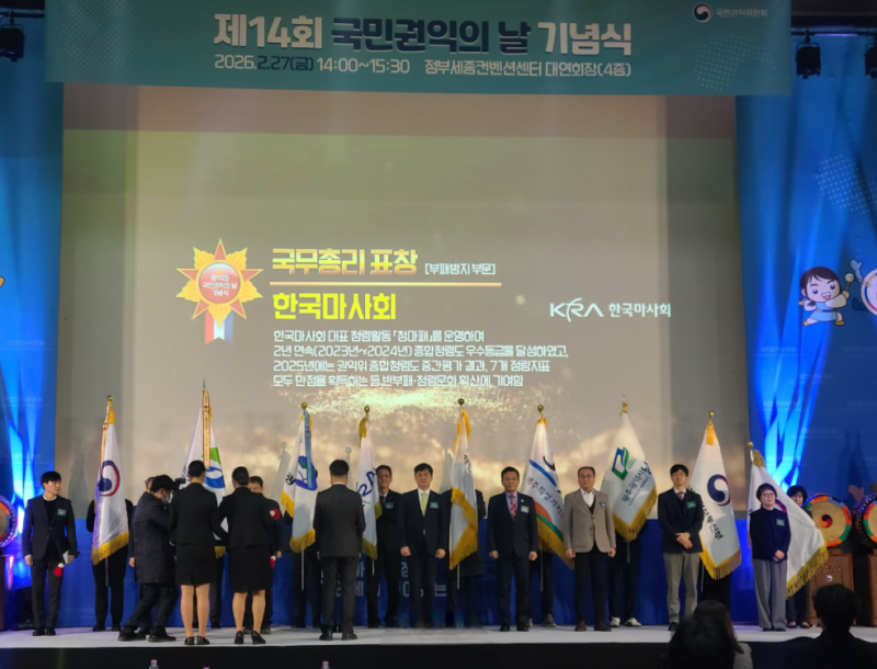 이번 기념식에서 한국마사회는 법제처, 광진구청 등과 함께 종합청렴도 유공 단체 표창을 수상하며, 권익위로부터 평가받는 31개 공기업 중 중 유일한 수상 기관으로 그 명예를 안았다.