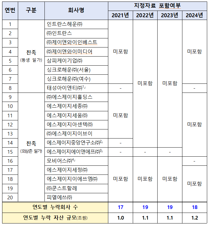 또한, 정 회장은 자료제출 대상 친족 수가 많지 않고, 누락회사 대부분은 매우 가까운 친족인 동생 일가, 외삼촌 일가가 직접 소유하거나 대표이사로 있는 회사로서, 해당 친족들과는 모임·행사 등을 통해 지속 교류해왔으므로 그 친족들이 경영하는 회사들을 계열회사에 포함시켜야 했다는 판단이다.
