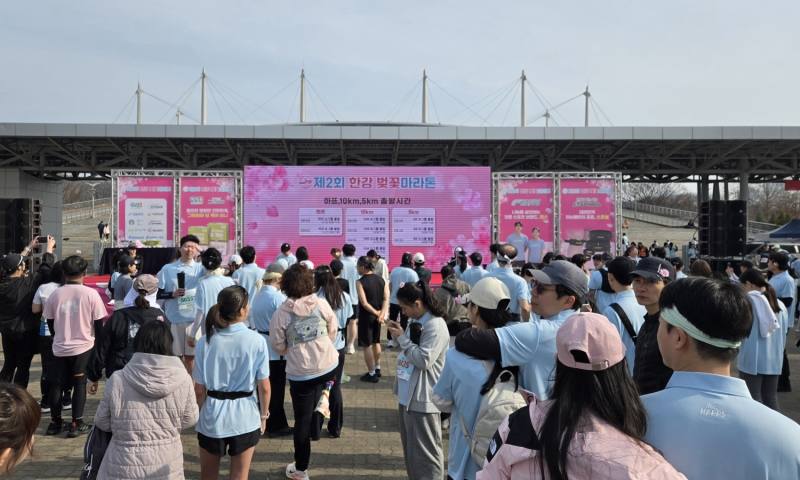 지난 29일 서울 상암동 평화의 광장 일대에서 열린 ‘제2회 한강 벚꽃마라톤’ 대회에는 다양한 연령대 참가자들이 몰렸다. 기록 단축을 목표로 한 선수층보다 친구, 가족, 러닝 크루 단위로 참여한 일반 참가자 비중이 눈에 띄게 높았다.