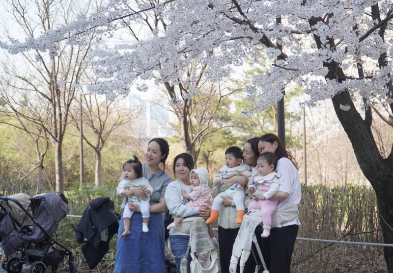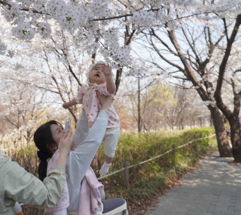 ▲ 설레임 가득한 봄을 맞아 여의도 벚꽃길 나들이에 나선 시민들과 예쁜 봄처럼 피어난 아기들