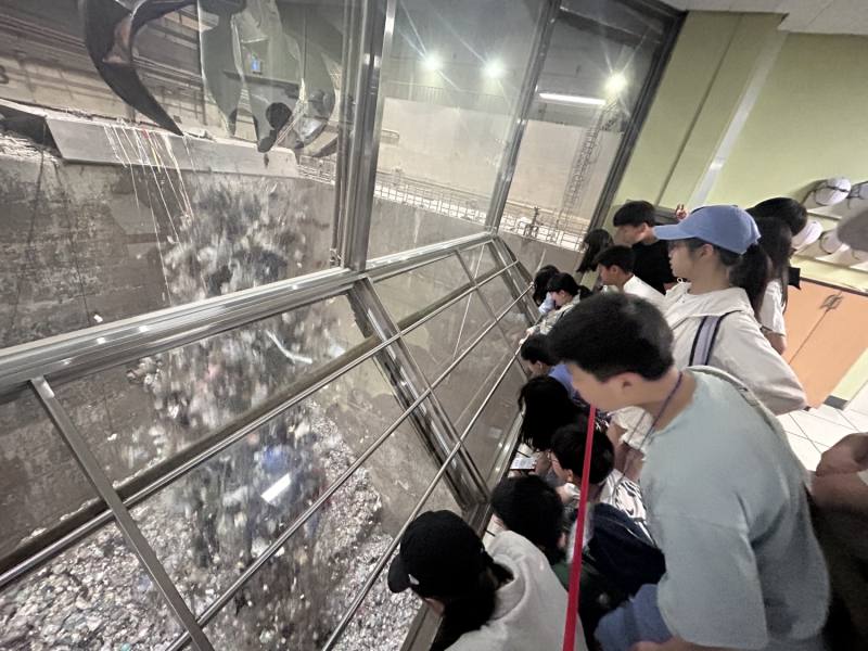 학생들은 집게 크레인이 수십 미터 높이에서 종량제 봉투를 터뜨려 뒤섞는 '파봉' 공정을 직접 확인했다. 종량제 봉투 안에서 비닐, 캔, 건전지 등 다양한 폐기물이 섞이는 과정을 보며 분리배출의 중요성을 체감했다.