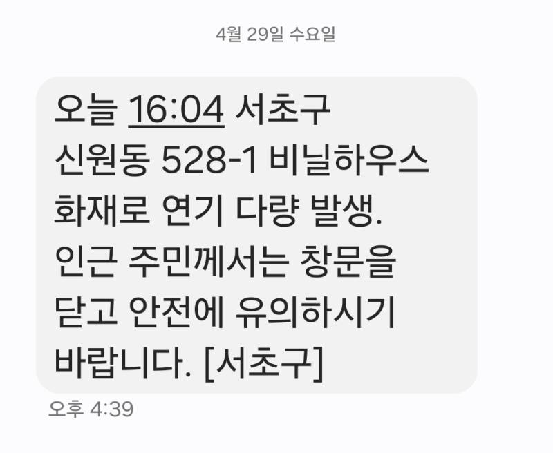 서초구는 화재 발생 약 35분 후 재난문자를 통해 인근 주민들에게 상황을 알리고 창문을 닫는 등의 안전 수칙을 안내했다. 다소 시간이 지난 뒤 이뤄진 안내였지만, 연기 확산 상황에서 주민들에게 주의를 준 점에서 의미가 있다는 평가도 나온다. 소방당국은 화재 진압과 함께 정확한 화재 원인을 조사 중인 것으로 알려졌다.